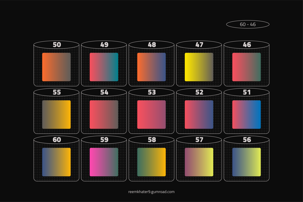 .نقدم مجموعة من التدرجات اللونية، فيها أكثر من ٥٠ تدرج لوني. اختير كل تدرج بعناية
